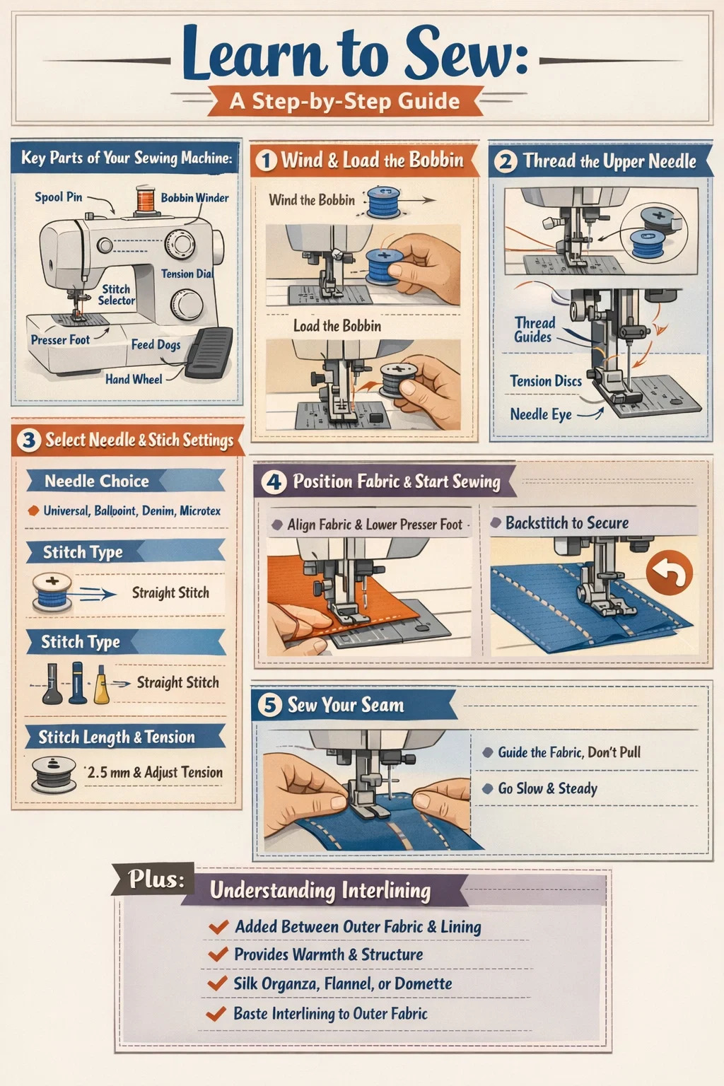 ミシンの使い方を段階的に学ぶことは、ほとんどの初心者が予想するよりも簡単です。主要なプロセスは、ミシンのセットアップ、ボビンの巻き取りと装着、上針に糸を通す、ステッチの選択、縫製の 5 つのアクションに集約されます。これらの基本を理解したら、基本的な裾から構造的な衣服まで、あらゆるものに取り組むことができます。 芯地 — 外側の生地と裏地の間に縫い付けられた隠れた層で、ボディ、形状、暖かさを追加します。このガイドでは、完全な初心者から自信のある縫製者になることができるように、すべてのステップを詳しく説明します。