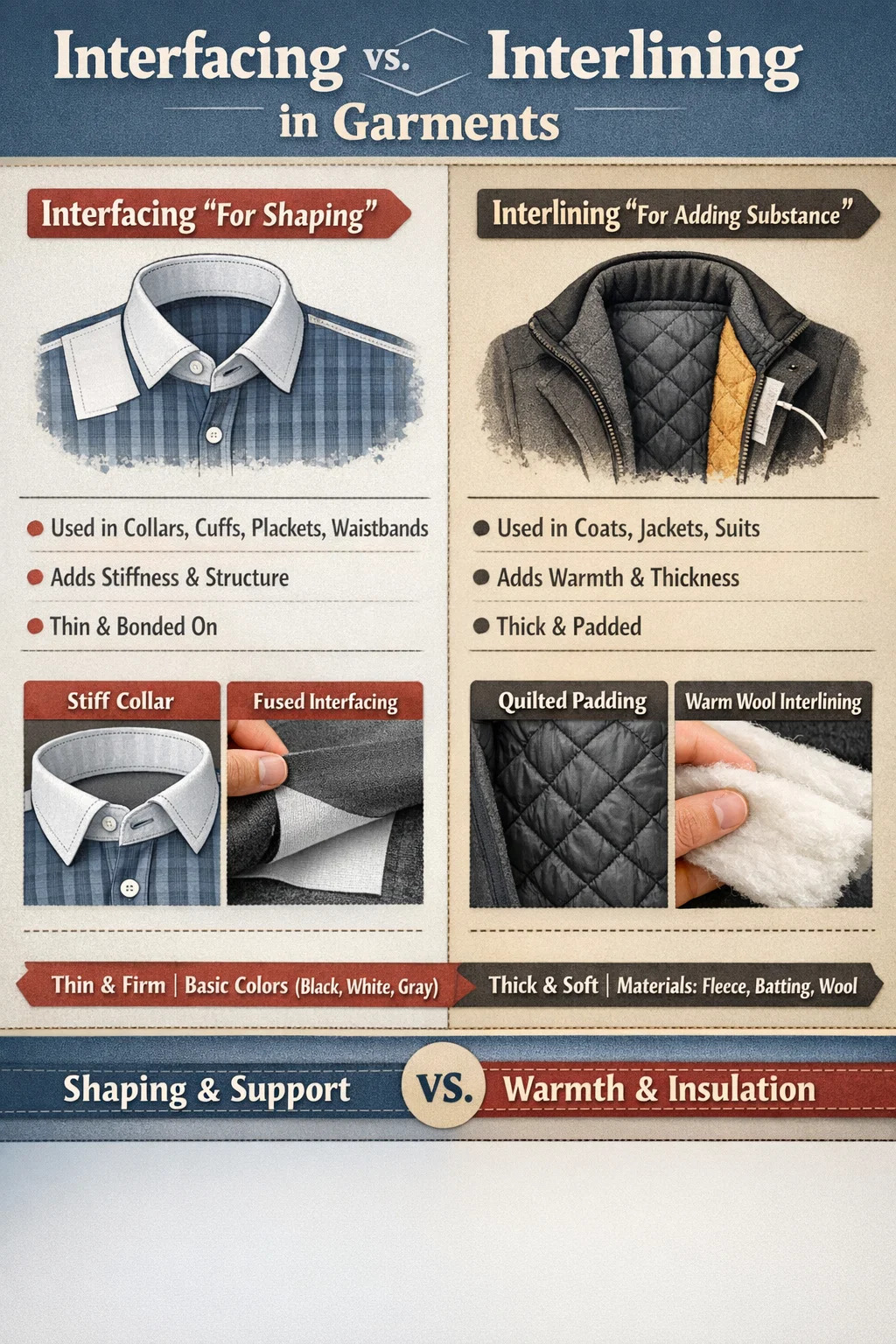 縫製や生地の加工においては、 芯地 インターフェイスとインターフェイスは、衣服の「目に見えない骨格」と「断熱層」のようなものです。どちらも衣服の中に隠されていますが、まったく異なる目的を果たします。